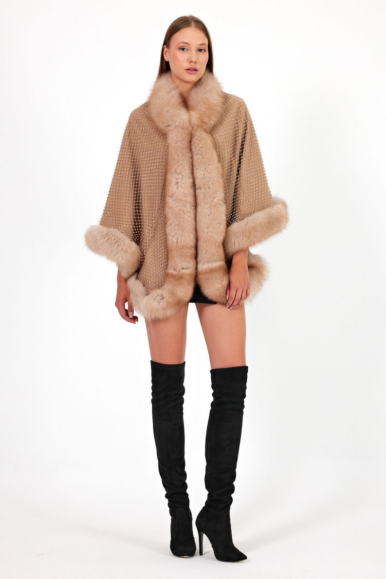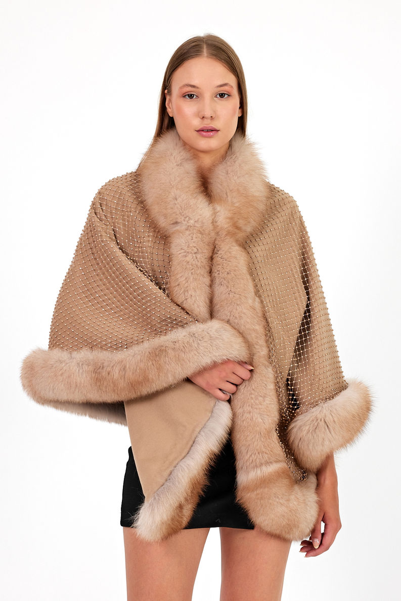 Cape With Rhinestones And Fox Fur Trim