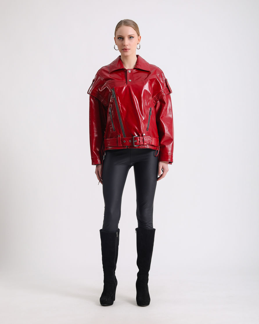 REDLIPS red patent leather jacket is made of high quality young lamb leather