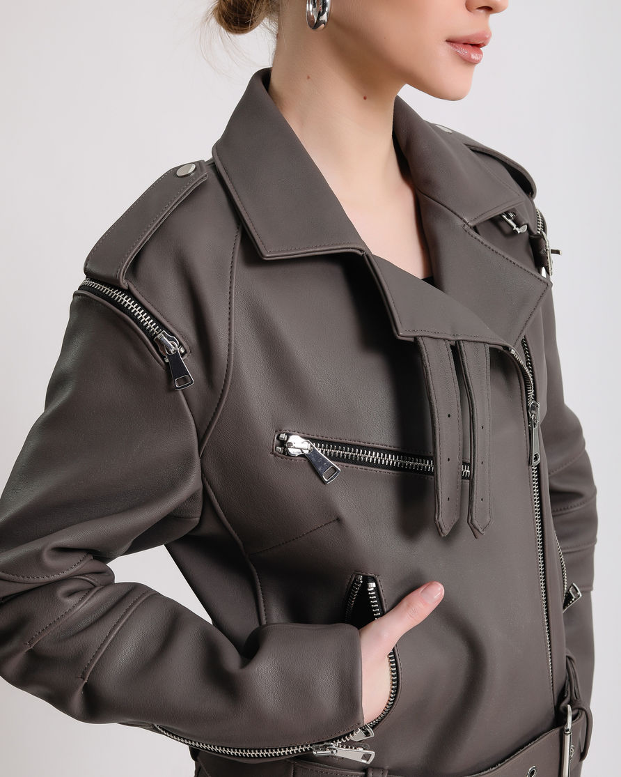 BETWEEN GRAY AND BEIGE cowhide leather jacket